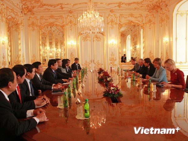 | Đoàn đại biểu cấp cao Quốc hội Việt Nam hội đàm với Phó Chủ tịch Quốc hội Slovakia Renata Zmajkovicova. (Ảnh: Quang Vinh/Vietnam+) |