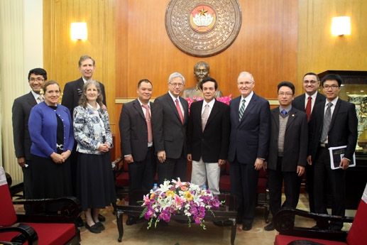 | Ông Lê Bá Trình cùng Đoàn đại biểu Giáo hội các Thánh hữu Ngày sau của Chúa Giê Su Ky Tô (Ảnh: Báo Đại đoàn kết) |