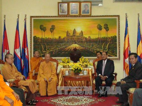 (VOV5) - Chiều 12/06, Bộ trưởng Bộ Nghi lễ và Tôn giáo Vương quốc Campuchia Min Khin đã tiếp Đoàn Giáo hội Phật giáo Việt Nam do Hòa thượng Thích Trí Quảng, Phó Chủ tịch Hội đồng trị sự, Trưởng ban Phật giáo quốc tế Trung ương giáo hội dẫn đầu, đang ở thăm Campuchia từ ngày 11 - 13/6.