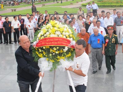 | Đoàn làm lễ dâng hoa tại đồi Độc Lập và đài tưởng niệm quân tình nguyện Việt Nam tại thủ đô Phnom Pênh. |