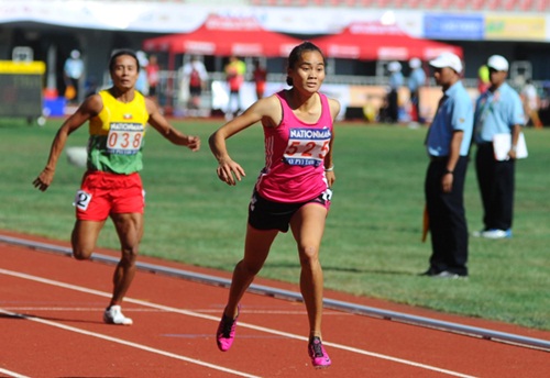 | Quách Thị Lan xuất sắc về nhất tại vòng loại điền kinh 400m nữ. |
