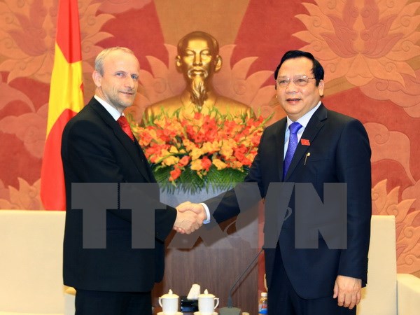 | Phó Chủ tịch Quốc hội Huỳnh Ngọc Sơn tiếp Chủ tịch Ủy ban Giám sát ngân sách Hạ viện Séc Vladimir Konicek. (Ảnh: TTXVN) |