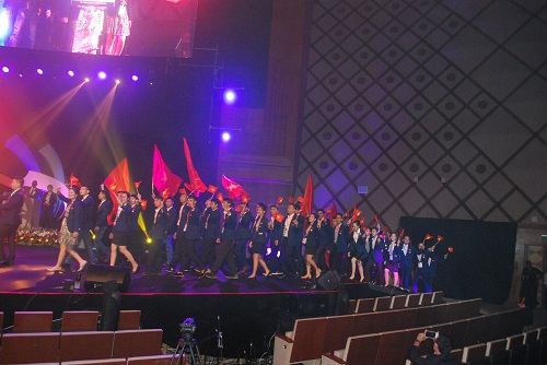 | Đoàn thí sinh Việt Nam tiến vào sân khấu được sự chào đón nồng nhiệt của toàn thể hội trường. Ảnh: baodansinh.vn |