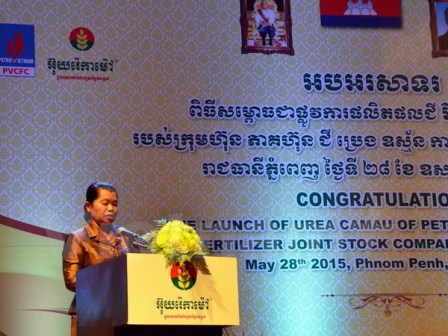 Trong lễ ra mắt chính thức sản phẩm phân bón Đạm Cà Mau tại thị trường Campuchia được tổ chức tối 28/5 tại Phnom Penh, Phó Thủ tướng Chính phủ Hoàng gia Campuchia Men Sam An đã đánh giá cao những đóng góp của các doanh nghiệp Việt Nam đầu tư vào Campuchia đối với sự nghiệp phát triển kinh tế, xã hội của nước này nói chung và của Công ty cổ phần Phân bón Dầu khí Cà Mau (PVCFC) đối với sự phát triển nông nghiệp tại Campuchia nói riêng.