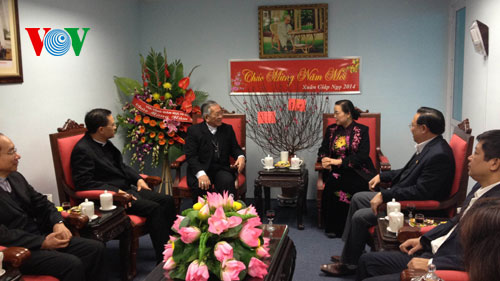 (VOV5) - Sáng 20/1, tại Hà Nội, bà Hà Thị Khiết, Bí thư Trung ương Đảng, Trưởng Ban Dân vận Trung ương gặp mặt và tiếp Giám mục Nguyễn Văn Nhơn, Tổng Giám mục Giáo phận Hà Nội đến thăm và chúc Tết Ban Dân vận Trung ương nhân dịp Tết Giáp Ngọ năm 2014.