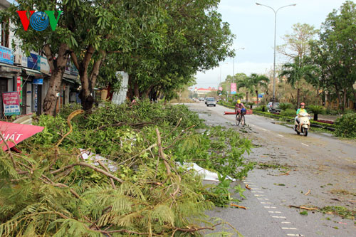 Cây xanh dù đã cắt cành nhưng bị đổ rất nhiều. Các trạm phát sóng Viettel và Vinaphone hư hỏng, các vườn cao su gãy đổ khoảng 10.000ha. Đây là thiệt hại rất lớn. Giao thông tắc, một số tỉnh lộ bị ngập, nhất là ở huyện Lệ Thủy./.