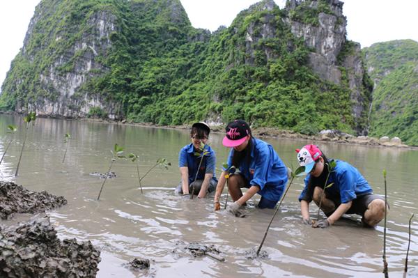 | Các tình nguyện viên trồng rừng ngập mặn tại vụng Ba Cửa. Ảnh minh họa: baoquangninh.com.vn |