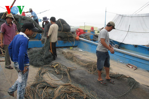 | Ngư dân tàu cá QNg 92479 tất bật chuẩn bị cho chuyến khơi mới (Ảnh: Thanh Hà) |