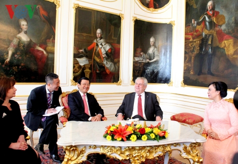 Chiều cùng ngày, Chủ tịch nước Trương Tấn sang hội kiến với Chủ tịch Thượng viện Czech Milan Stech và Chủ tịch Hạ viện Jan Hamácek. Tại các cuộc gặp, hai bên nhất trí cho rằng những thành tựu ấn tượng đă đạt được trong cuộc cuộc phát triển tại mỗi nước cùng những thế mạnh và tiềm năng to lớn có thể bổ sung cho nhau của hai bên là cơ sở vững chắc để quan hệ Việt Nam - Czech tiếp tục phát triển, đi vào chiều sâu, hiệu quả trong thời gian tới. Hai bên cũng nhất trí sẽ tăng cường hơn nữa quan hệ giữa Quốc hội hai nước. Lãnh đạo Sczech khẳng định tiếp tục tạo điều kiện thuận lợi cho cộng đồng hơn 60.000 người Việt Nam sinh sống ổn định tại Czech, làm tốt vai trò cầu nối phát triển quan hệ hữu nghị truyền thống và hợp tác nhiều mặt tốt đẹp giữa hai nước. Chủ tịch Thượng viện và Hạ viện Czech cũng khẳng định ủng hộ việc ký kết Hiệp định Thương mại Tự do Việt Nam - EU (EVFTA), mở ra triển vọng mới cho việc thúc đẩy mạnh mẽ hơn nữa quan hệ kinh tế - thương mại – đầu tư giữa EU và Việt Nam.