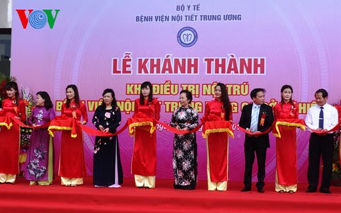 (VOV5) - Sáng 23/7, Phó Chủ tịch nước Nguyễn Thị Doan, Bộ trưởng Bộ Y tế Nguyễn Thị Kim Tiến cắt băng khánh thành, đưa vào hoạt động Khu điều trị nội trú Bệnh viện Nội tiết Trung ương cơ sở Tứ Hiệp, huyện Thanh Trì, Hà Nội.