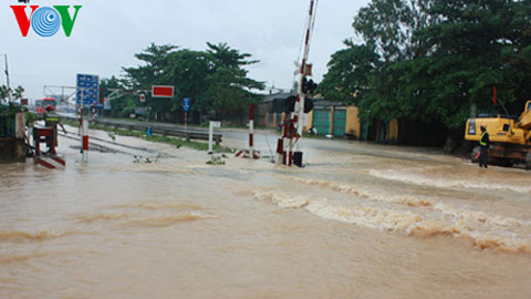 (VOV5) - Đến nay nước lũ từ thượng nguồn đổ về cuốn trôi đất đá, nền móng đường ray, làm biến dạng hàng trăm mét đường sắt.