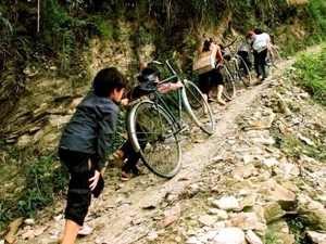 | Học sinh tiểu học huyện Sìn Hồ, Lai Châu vượt núi đến trường. (Ảnh: Báo ảnh Việt Nam). |
