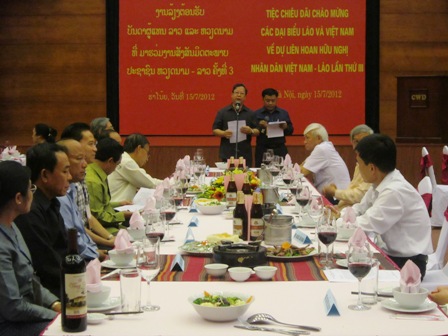 (VOV5) - Nhân dịp đoàn đại biểu nhân dân Lào và đoàn đại biểu nhân dân Việt Nam đến Thủ đô Hà Nội tham dự Liên hoan hữu nghị nhân dân Việt Nam - Lào lần thứ III năm 2012, tối 15/7, Liên hiệp các tổ chức hữu nghị Việt Nam, Hội hữu nghị Việt Nam - Lào tổ chức buổi gặp mặt thân mật chào mừng đoàn đại biểu.