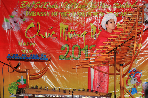 Các tiết mục văn nghệ đặc sắc với các làn điệu dân ca và nhạc cụ dân tộc do các bạn sinh viên đang học tập tại New Zealand trình diễn. Ảnh: Anh Đỗ