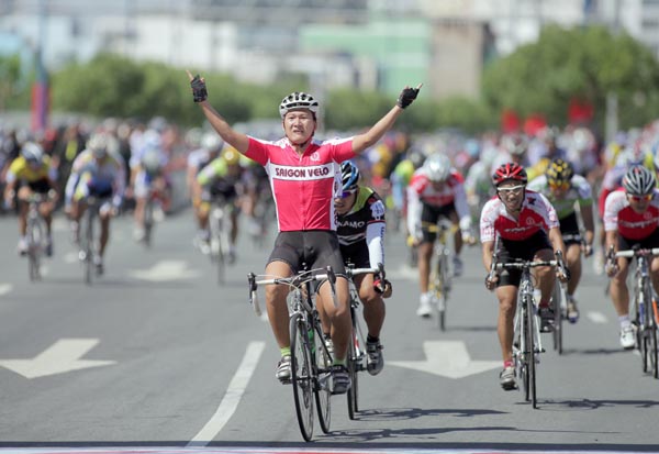 Vận động viên Lê Văn Quỳnh của đội Sài Gòn Velo là người về đích đầu tiên./.