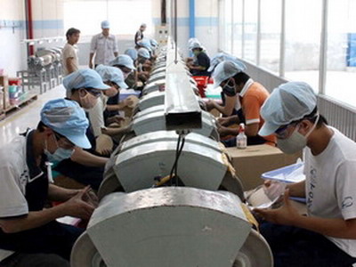 Sản xuất tại Công ty TNHH Acrylic Idea Factory East (vốn FDI của Hoa Kỳ). (Ảnh: Quách Lắm/TTXVN)