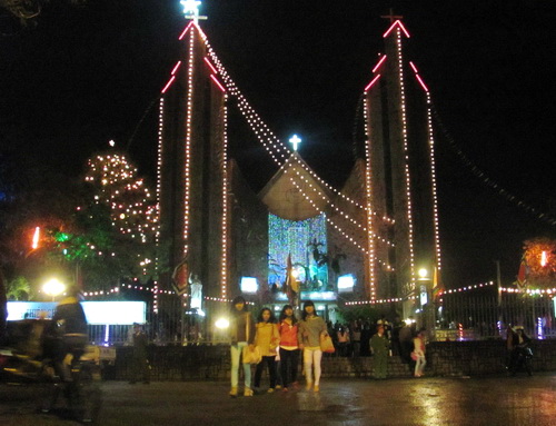 | Nhà thờ Phủ Cam, TP. Huế lung linh trong ánh đèn đêm Noel 24/12 |
