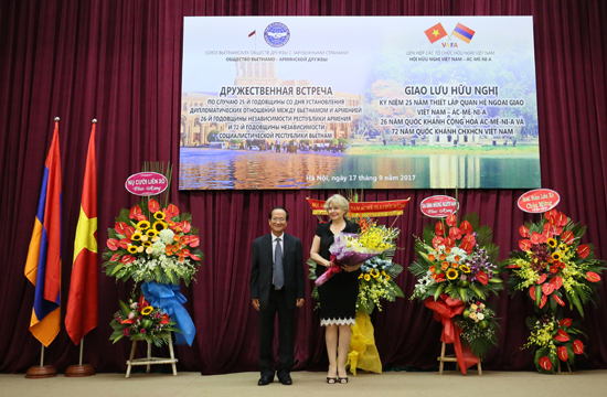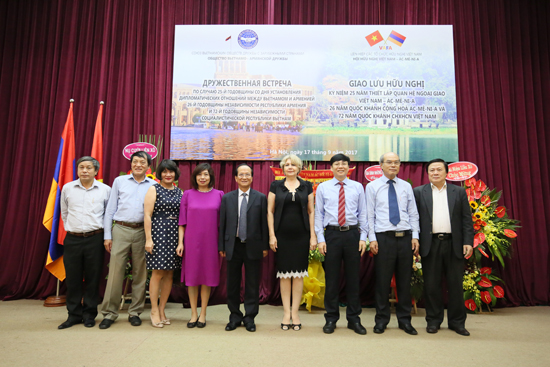 Sáng 17/9, tại Hà Nội, Hội Hữu nghị Việt Nam – Armenia thuộc Liên hiệp các tổ chức hữu nghị Việt Nam tổ chức giao lưu hữu nghị kỷ niệm 25 năm thiết lập quan hệ ngoại giao Việt Nam- Armenia (14/7/1992-14/7/2017); 26 năm Quốc khánh nước Cộng hòa Armenia (1991 - 2017) và 72 năm Quốc khánh nước Cộng hòa xã hội chủ nghĩa Việt Nam (1945 - 2017).