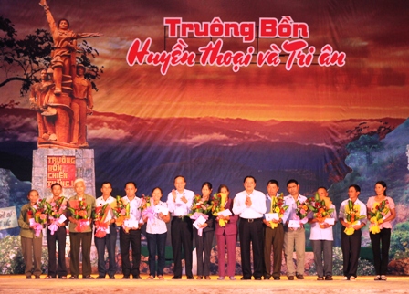 Tới dự có ông Tô Huy Rứa, Ủy viên Bộ chính trị, Bí thư Trung ương Đảng, Trưởng ban tổ chức Trung ương. Truông Bồn là một đoạn đèo dốc dài khoảng 5km trên dãy núi Thung Nưa, nằm trên tuyến đường chiến lược vận chuyển hàng hoá từ miền Bắc chi viện cho miền Nam, chạy qua xã Mỹ Sơn, huyện Đô Lương, tỉnh Nghệ An. Nơi đây đã ghi lại dấu ấn những trận đánh ác liệt của đế quốc Mỹ trong chiến tranh. Từ tháng 6 đến tháng 10/1968, Mỹ ném xuống Truông Bồn hơn gần hơn 2 nghìn 700 quả bom các loại. Thanh niên xung phong đã cùng các lực lượng khác và nhân dân địa phương xả thân chiến đấu, đảm bảo đường thông suốt. Trong phát biểu tại cuộc giao lưu, ông Hồ Đức Phớc, Chủ tịch Ủy ban nhân dân tỉnh Nghệ An nêu rõ: Sự hy sinh của các anh, các chị mãi mãi được Tổ quốc và nhân dân ghi danh: Chiến tranh đã qua đi hơn 4 thập kỉ, cuộc sống đã hồi sinh ngay trên mảnh đất hoang tàn năm xưa, những chiến sĩ dũng cảm đã làm nên huyền thoại Trương Bồn đã trở thành bất tử, là biểu tượng thiêng liêng, là tấm gương để các thế hệ hôm nay và mai sau học tập, tri ân. Chúng tôi hy vọng chương trình giao lưu nghệ thuật Truông Bồn huyền thoại và tri ân tối nay sẽ làm sống lại những kí ức không thể nào quên về một thời bom đạn, một thời oanh liệt, một thời hào hùng, một sự kiện bi hùng trong lịch sử đấu tranh cách mạng của dân tộc Việt Nam mà ở đó những chiến sĩ thanh niên xung phong Trương Bồn là biểu tượng đẹp nhất cho chủ nghĩa anh hùng cách mạng sáng ngời. Đồng thời, thể hiện đạo lí uống nước nhớ nguồn và tấm lòng tri ân của chúng ta đối với các anh hùng liệt sĩ.