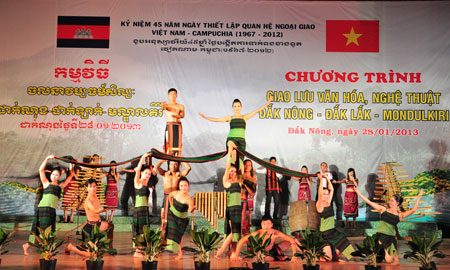 (VOV5) - Tại Thị xã Gia Nghĩa, tỉnh Đắc Nông vừa diễn ra chương trình giao lưu văn hóa nghệ thuật giữa 3 tỉnh biên giới Đắc Nông, Đắc Lắc của Việt Nam và Mônđukiri (Campuchia), nhân kỷ niệm 45 năm thiết lập quan hệ ngoại giao giữa Việt Nam - Campuchia, và chào đón năm mới Quý Tỵ 2013.