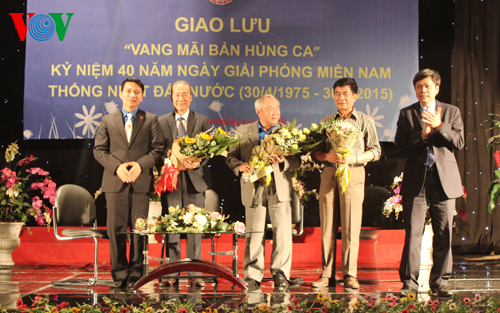 Kỷ niệm 40 năm ngày Giải phóng miền nam thống nhất đất nước (30/4/1975- 30/04/2015), sáng nay, tại Trung tâm phát thanh Quốc gia, 58 Quán Sứ, Hà Nội, Đoàn Thanh niên Cộng sản Hồ Chí Minh khối các cơ quan Trung ương phối hợp với Đoàn thanh niên Đài Tiếng nói Việt Nam tổ chức chương trình giao lưu “Vang mãi bản hùng ca”. Chương trình giao lưu là dịp ôn lại truyền thống hào hùng, vẻ vang của dân tộc; sự cống hiến to lớn của các thế hệ các bộ đoàn, đoàn viên thanh niên cả nước nói chung và các thế hệ cán bộ đoàn, đoàn viên thanh niên Khối các cơ quan Trung ương nói riêng nhân kỷ niệm 40 năm ngày giải phóng miền nam, thống nhất đất nước.