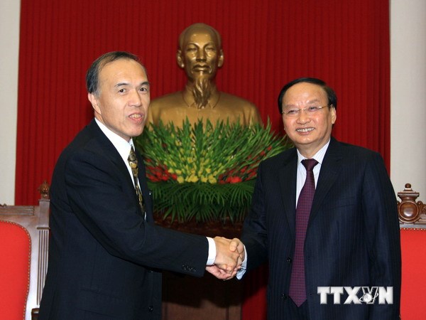 | Trưởng ban Tổ chức Trung ương Tô Huy Rứa tiếp Ủy viên Trưởng Tổng cục Nhân sự Quốc gia Nhật Bản Yosida Kozo. |