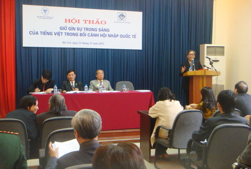 (VOV5) - “Giữ gìn sự trong sáng của tiếng Việt trong bối cảnh hội nhập quốc tế” là chủ đề hội thảo do Liên hiệp các Hội Khoa học và Kỹ thuật Việt Nam, Hội Ngôn ngữ học Việt Nam, phối hợp tổ chức sáng 21/12 ở Hà Nội.