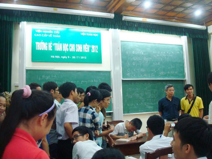 (VOV5)- Chiều 17/7/2012, trong khuôn khổ chương trình Trường hè "Toán học cho sinh viên" 2012, do Viện Toán học và Viện Nghiên cứu Cao cấp về Toán tổ chức, GS. Ngô Bảo Châu đã có buổi giảng dạy về Lý thuyết Galois tại Viện Toán học. Kéo dài từ 9-28/7/2012, chương trình thu hút sự tham gia của rất đông sinh viên ngành Toán tại các trường đại học và nhiều nhà nghiên cứu Toán trong và ngoài nước.