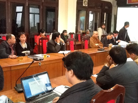 | Quang cảnh buổi họp báo của UBND quận Ba Đình về dự án tu bổ chùa Một Cột. Ảnh: Ngọc Anh |