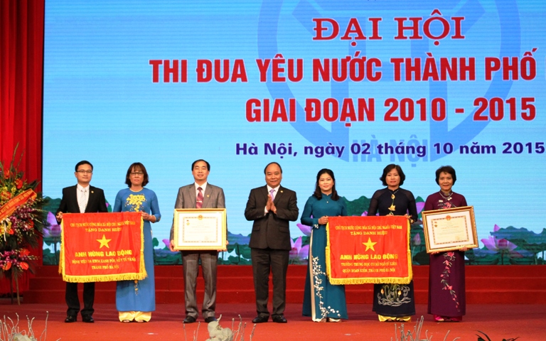 Tại Đại hội diễn ra sáng nay, Phó Thủ tướng Nguyễn Xuân Phúc trao danh hiệu anh hùng Lao động cho hai tập thể: Trường THCS Ngô Sĩ Liên và Bệnh viện Đa khoa Xanh Pôn. Dịp này, 10 cá nhân được thành phố Hà Nội trao danh hiệu “ Công dân Thủ đô ưu tú” 2015.
