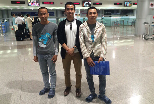 | Hai ngư dân Việt Nam (bên phải và trái) đã về nước an toàn (Ảnh: vov.vn) |