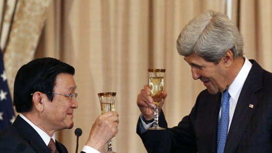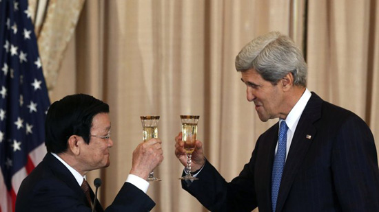 | Chủ tịch nước Trương Tấn Sang cụng ly cùng Ngoại trưởng Mỹ John Kerry |