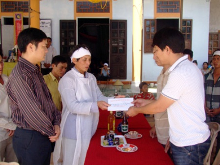 Theo đó, gia đình của nạn nhân Phan Văn Phong (sinh năm 1970) và Nguyễn Thị Thoài (sinh năm 1990) được hỗ trợ mỗi nạn nhân 6.500USD. Cùng ngày, Hội người Việt tại Nga cũng đã trao 6.500USD hỗ trợ gia đình nạn nhân Mai Văn Hồng (sinh năm 1990) ở làng biển Hải Ninh, huyện Quảng Ninh. UBND huyện Quảng Ninh và Hội chữ thập đỏ huyện cũng đã hỗ trợ gia đình mỗi nạn nhân 3 triệu đồng.