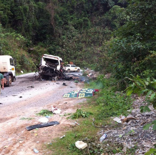| Hiện trường vụ nổ xe khách tại Lào (Ảnh: nld.com.vn) |