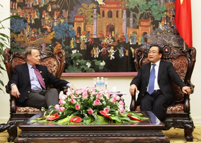Phó Thủ tướng Hoàng Trung Hải tiếp Hạ nghị sỹ Mỹ David Dreier, Chủ tịch Ủy ban Quy tắc Hạ viện Mỹ. (Ảnh: Doãn Tấn/TTXVN)