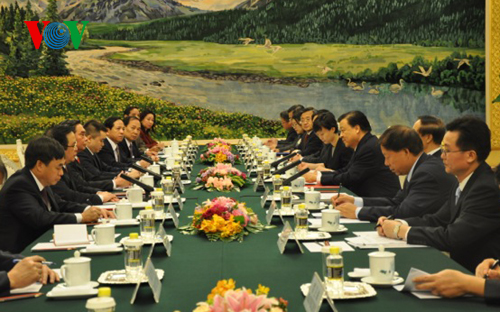 | Ông Lê Hồng Anh hội đàm với ông Lưu Vân Sơn |