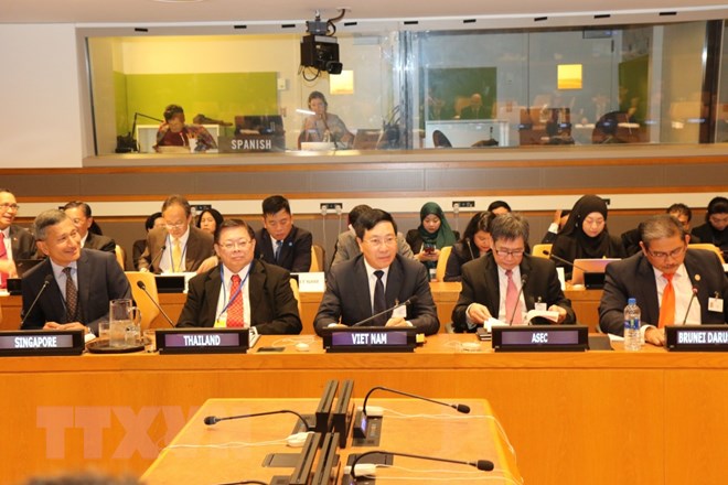 Bên lề Đại hội đồng Liên hợp quốc Khoá 73 tại thành phố New York (Mỹ), ngày 26/09, Phó Thủ tướng, Bộ trưởng Ngoại giao Phạm Bình Minh tham dự Hội nghị cấp Bộ trưởng các nước ASEAN và Liên minh Thái Bình Dương lần thứ 5; có các cuộc gặp song phương với Tổng thống Palau, Bộ trưởng ngoại giao các nước Ecuador và Ucraina.