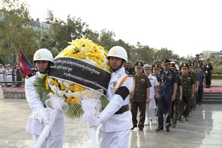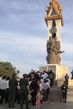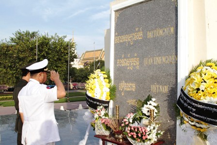 Mọi người đã dành một phút mặc niệm, tưởng nhớ hương hồn các liệt sĩ quân tình nguyện Việt Nam hy sinh trên “đất nước Chùa Tháp” qua các thời kỳ cách mạng, đặc biệt là giai đoạn giúp nhân dân Campuchia đấu tranh thoát khỏi chế độ diệt chủng Polpot. Phát biểu sau lễ dâng hương đầy xúc động, Đại tướng El Vansarath, Quốc vụ khanh Bộ Quốc phòng Campuchia đánh giá cao công lao và hy sinh của các thế hệ chiến sĩ Quân đội Nhân dân Việt Nam đối với đất nước Campuchia, và coi đây là di sản vô giá cho mối quan hệ đặc biệt giữa hai nước. Đại tướng El Vansarath nói: "Tôi rất xúc động khi Đảng, Chính phủ và nhân dân Việt Nam đã đưa người thân, chồng, cha, con cháu, bộ đội tình nguyện sang giúp giải phóng dân tộc Campuchia thoát khỏi chế độ diệt chủng Pôn Pốt ngày 7/1/ 1979. Bộ đội tình nguyện Việt Nam đã thể hiện tinh thần anh hùng cao cả, hy sinh xương máu trong quá trình giúp nhân dân chúng tôi hồi sinh. Chúng tôi không bao giờ quên công ơn ấy. Mong cho tình đoàn kết, hữu nghị hợp tác giữa quân đội và nhân dân 2 nước ngày càng phát triển tốt đẹp và trường tồn".
