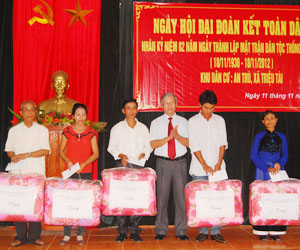 Nhân dịp này, Chủ tịch Quốc hội Nguyễn Sinh Hùng tặng quà các gia đình tiêu biểu đã có thành tích trong phong trào xây dựng đời sống văn hóa mới ở khu dân cư.