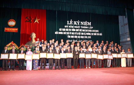 (VOV5) - Hôm qua, Ban Thường trực Ủy ban Mặt trận Tổ quốc (MTTQ) Việt Nam tỉnh Ninh Bình tổ chức kỷ niệm 85 năm ngày truyền thống Mặt trận Tổ quốc Việt Nam (18/11/1930 - 18/11/2015) và biểu dương 85 Chủ tịch Ủy ban Mặt trận Tổ quốc Việt Nam xã, phường, thị trấn tiêu biểu giai đoạn 2010 - 2015.
