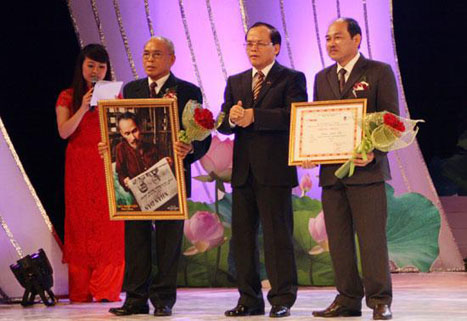 | Tác giả Minh Thư và nhân vật Nguyễn Ngọc Lài nhận giải Nhất. |
