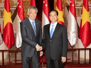 (VOV5) - Nhận lời mời của Thủ tướng Chính phủ Nguyễn Tấn Dũng, Thủ tướng Singapore Lý Hiển Long và Phu nhân cùng Đoàn đại biểu cấp cao Singapore thăm chính thức Việt Nam từ ngày 11 đến ngày 13/9/2013. Chiều 11/9, sau lễ đón chính thức Thủ tướng Singapore Lý Hiển Long và Phu nhân tại Hà Nội, Thủ tướng Chính phủ Nguyễn Tấn Dũng hội đàm với Thủ tướng Lý Hiển Long. Trao đổi về hợp tác song phương, hai nhà lãnh đạo nhất trí cho rằng hai bên cần duy trì thường xuyên việc trao đổi đoàn cấp cao và các cấp, kể cả hợp tác giữa hai Đảng và hai Quốc hội; ủng hộ việc xúc tiến thành lập Hội Hữu nghị tại mỗi nước nhằm đẩy mạnh giao lưu nhân dân. Hai nhà lãnh đạo cũng nhất trí sẽ tăng cường hợp tác trong các lĩnh vực giáo dục-đào tạo, năng lượng-dầu khí, nông nghiệp, xây dựng, giao thông -vận tải, lao động, tài chính, bưu chính viễn thông, công nghệ thông tin. Thủ tướng Nguyễn Tấn Dũng cho biết: “Tôi và Ngài Thủ tướng Lý Hiển Long đã quyết định chính thức nâng cấp quan hệ hữu nghị và hợp tác toàn diện Việt Nam - Singapore thành Đối tác Chiến lược. Chúng tôi tin tưởng chắc chắn rằng việc triển khai quan hệ Đối tác Chiến lược Việt Nam - Singapore không chỉ tạo ra xung lực mới để đưa các lĩnh vực hợp tác giữa hai nước ngày càng đi vào chiều sâu, hiệu quả và bền vững mà còn đóng góp tích cực cho mục tiêu xây dựng Cộng đồng ASEAN vào năm 2015 cũng như cho hòa bình, ổn định, hợp tác và phát triển ở Châu Á - Thái Bình Dương và trên thế giới.”