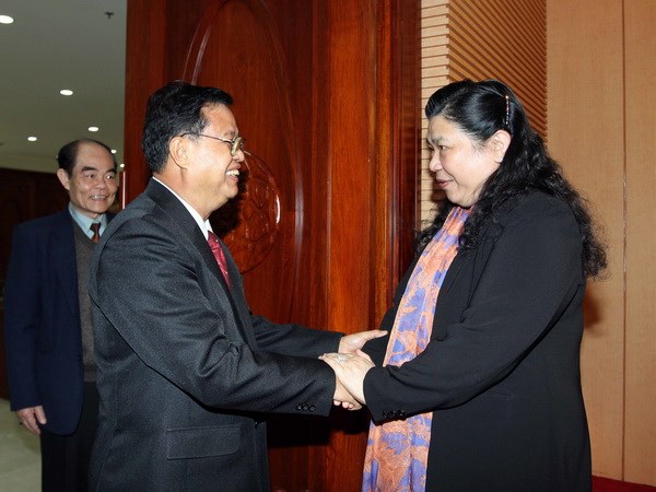 | Phó Chủ tịch Quốc hội Tòng Thị Phóng đón Phó Chủ tịch Quốc hội Lào Somphan Phenkhamy. (Ảnh: An Đăng/TTXVN) |