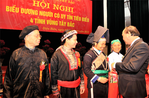 (VOV5) - Tỉnh Điện Biên ngày 24/12 tổ chức hội nghị biểu dương người uy tín tiêu biểu 4 tỉnh vùng Tây Bắc (Sơn La, Lai Châu, Điện Biên và Lào Cai). 220 đại biểu được biểu dương trong hội nghị lần này là những người có những đóng góp tích cực trên các lĩnh vực kinh tế, chính trị, xã hội.