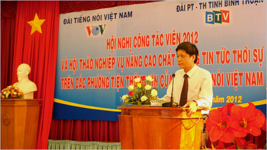 (VOV)- Sáng 26/11, tại thành phố Phan Thiết, tỉnh Bình Thuận, Đài Tiếng nói Việt Nam phối hợp với đài Phát thanh Truyền hình tỉnh Bình Thuận tổ chức hội nghị cộng tác viên các tỉnh miền Đông Nam Bộ năm 2012 và hội thảo nghiệp vụ “Nâng cao chất lượng tin tức thời sự trên các phương tiện thông tin của Đài TNVN”.