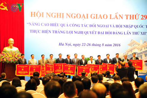 (VOV5) - Chiều ngày 26/8, sau 5 ngày làm việc chính thức, Hội nghị Ngoại giao lần thứ 29 với chủ đề "Nâng cao hiệu quả công tác đối ngoại và hội nhập quốc tế - thực hiện thắng lợi đường lối đối ngoại của Đại hội Đảng lần thứ XII", đã bế mạc.