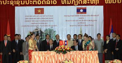 Phó Thủ tướng Nguyễn Xuân Phúc và Somsavat Lengsavad đã chứng kiến lễ ký các văn bản: Biên bản cuộc họp giữa kỳ 2012; Thỏa thuận quy trình thí điểm thực hiện dự án đầu tư xây dựng thực hiện vốn viện trợ của Chính phủ Việt Nam do phía Lào tự thực hiện, có sự phối hợp của Chính phủ Việt Nam; Hợp đồng thăm dò quặng chì, kẽm tại hai tỉnh Hủa phăn và Xiêng Khoảng giữa Chính phủ Lào và Công ty Cổ phần Khoáng sản và Công nghiệp Chiến Công của Việt Nam./.