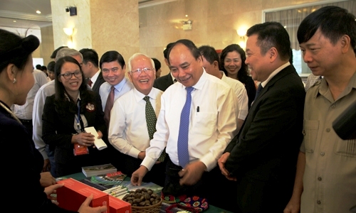 | Phó Thủ tướng Nguyễn Xuân Phúc thăm quan các gian hàng tại Hội nghị (Ảnh: vovgiaothong) |