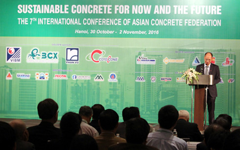 Phát biểu khai mạc hội nghị, Thứ trưởng Bộ Xây dựng Nguyễn Quang Hùng, Chủ tịch Hội Bê tông Việt Nam, đánh giá cao việc tổ chức hội nghị quốc tế lần thứ 7 ACF2016, với mục tiêu chia sẻ kinh nghiệm và tiếp tục phát triển bê tông bền vững cho các công trình xây dựng.