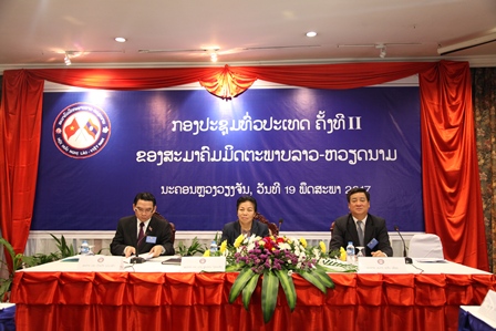 Phát biểu tại Hội nghị, ông Vilayvonge Budakhame, Ủy viên Trung ương Đảng, Ủy viên Ban Thường vụ Quốc hội, Chủ nhiệm Ủy ban Kế hoạch - Tài chính và Kiểm toán của Quốc hội Lào, Chủ tịch Trung ương Hội hữu nghị Lào-Việt Nam nhấn mạnh: “Trong suốt 10 năm qua, chúng ta vui mừng nhận thấy, hội hữu nghị Lào-Việt Nam ở cả cấp trung ương và địa phương đều có sự phát triển liên tục và kịp thời. Chi Hội hữu nghị Lào-Việt Nam các tỉnh trên toàn quốc đã hoàn thành việc củng cố bộ máy tổ chức. Hội hữu nghị Lào-Việt Nam luôn tiến hành các hoạt động ngoại giao nhân dân song song với ngoại giao nhà nước trong giáo dục tư tưởng cho thế hệ trẻ, thanh thiếu niên cũng như nhân dân hai nước hiểu hơn về mối quan hệ gắn bó truyền thống giữa Việt Nam Lào, tình đoàn kết đặc biệt và sự hợp tác toàn diện hiếm có trên thế giới”.